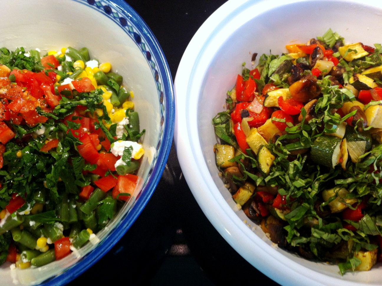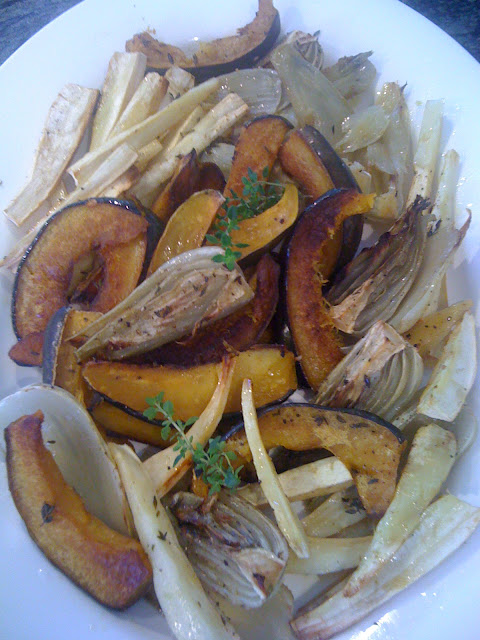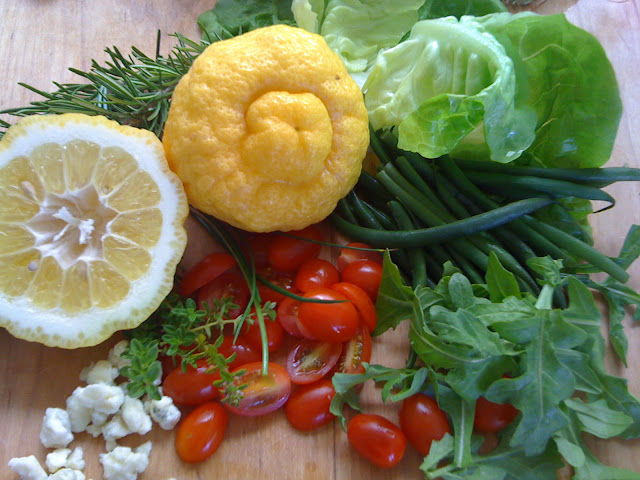 The following is a great recipe for a salad that calls for roasted vegetables you can adjust with the seasons (a great crowd pleaser that travels well--perhaps a better choice for your not-so-busy days):