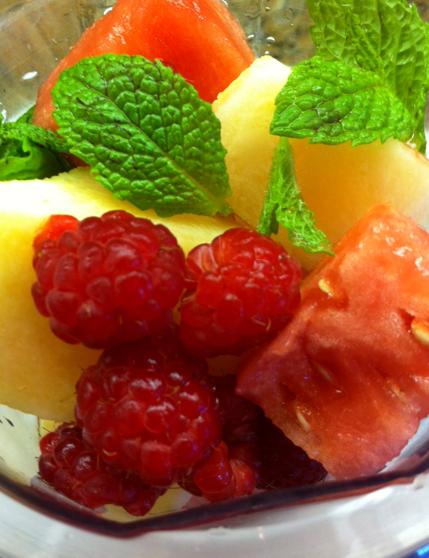 summer time minty watermelon-cantaloupe granita